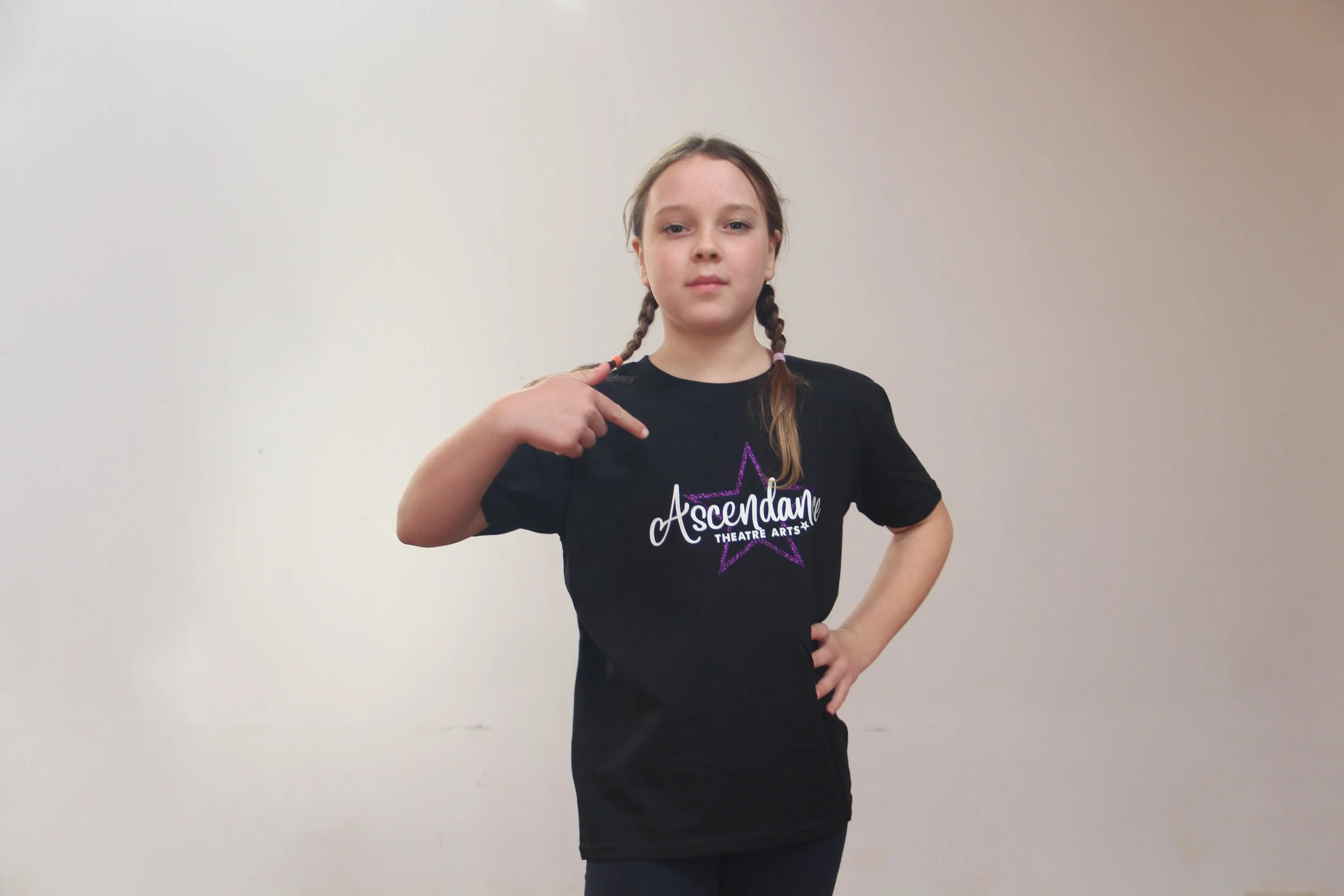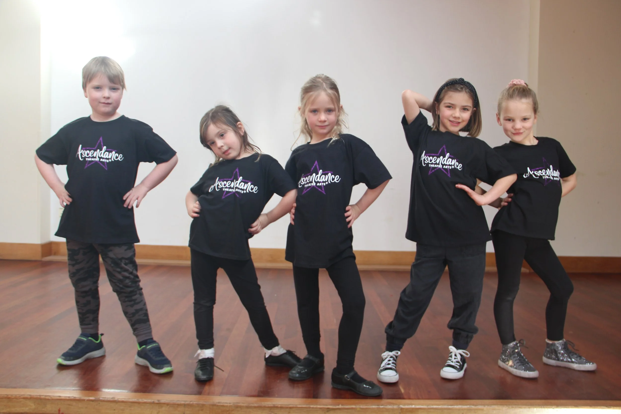 Students should wear an Ascendance T-shirt, plain black trousers with jazz shoes to lessons, performances and exams. New students are encouraged to wear a plain black t-shirt.